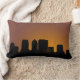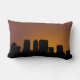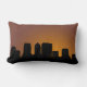 En skylt av en stor stad som är silhuetterad mot det stigning sol.