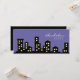 Cityscape Svärmoafternoon inbjudan har en typisk urban landskapsbild av hur staden ser ut med silhuetter av höga skyskrapor upplysta på natten. Perfekt för den sista natten före bröllopet för svärmoafternoon eller möhippa. © Morning 6