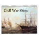Kalender som innehåller bilder av fraktaser, järnklader, monitorer och styrskepp från de blå och bruna vatten-flottorna.