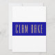 Den här moderna, smidiga designen har ett levande, vitt, blått vågrät i rand. Den långa, smalare texten inuti spådomarna visar "CLAM BAKE" i ljummet elegant typografi. Det yttre randen är skarpt, ljust vitt. Texten kan vara personlig.