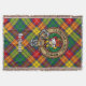 Clan Buchanans vapenmärke omgivet av en rem och spänne över tartanbakgrund. Anpassad text.