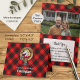 Clan Cunningham crest badge surrounded by a strap and buckle over tartan background. Thank you card. Custom photograph. Custom text fields on both sides.