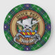 Clan Duncan crest badge surrounded by a strap and buckle over tartan background. Custom text.
