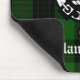 Skotskt Clan Gunn Crest-märke och text på tartanbakgrund.