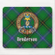 Clan Hendersons vapenmärke omgivet av en rem och spänne över tartanbakgrund. Anpassad text.