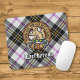 Clan MacPhersons vapensköld omgiven av en rem och spänne över klänningstartan bakgrund. Anpassad text.
