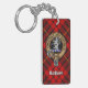 Clan MacQueen-bricka omgiven av ett band och ett låsbeslag över tartanbakgrunden. Anpassningsbar på båda sidor.