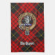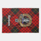 Clan MacQueen-bricka omgiven av ett band och ett låsbeslag över tartanbakgrunden. Anpassningsbar.