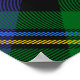 Clan Malcolm or MacCallum crest badge surrounded by a strap and buckle over tartan background. Custom text.