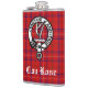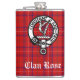 Skotskt Clan Rose crest-märke och text på tartanbakgrund