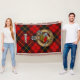 Clanwappen Wallace-emblem omgivet av en rem och spänne över tartanbakgrund. Anpassad text.