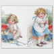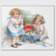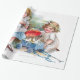 Charmig vintage som slår in papper som presenterar två gulliga flickor som leker med kaniner som målas av amerikanillustratören/reklamfilmkonstnären Ellen Hattie Clapsaddle.