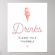 Denna dricks-skylt har akvarell rosafärgad glass och ett roligt retro-inspirerat teckensnitt. Ändra enkelt teckensnitt, teckensnittsfärger och bakgrundsfärg för att matcha din evenemangsstil. Denna skylt är perfekt för ditt bröllop, möhippa eller baby shower.