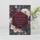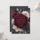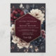 Evoke a sense of dramatic romance with this opulent floral design. Against a dark, moody backdrop, a lush bouquet of flowers bursts forth in rich shades of claret, deep indigo, and creamy ivory. The painterly arrangement features detailed anemones and full peonies, creating a timeless and elegant atmosphere for your special day.