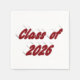 Graduation paper napkin with Class of 2026 in 3D burgundy text. Available in several styles and sizes.