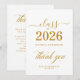 Show your appreciation in style with this Class of 2026 Gold Script Graduation Thank You Card. Featuring elegant gold script typography and a clean, modern layout, this design offers a timeless way to thank friends and family for their support, gifts, and encouragement during your graduation celebration.