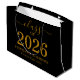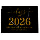 Stylish elegant custom graduation gift bag! Celebrate the graduate's accomplishment in style with this trendy graduation gift bag. Design features "Class of 2026" in gold font on a classic black background. Personalize this product by adding the name and school name. Easy to customize. Congratulations!