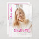 Celebrate the achievements of the Class of 2026 with our minimalist GRADUATE photo graduation announcement. The word 'GRADUATE' is highlighted in hot pink in bold typography, creating a striking focal point. The entire card is dedicated to a beautiful photo, capturing the essence of this special milestone. To add a touch of elegance, a sleek vertical line runs along the left side, extending towards the upper part of the card, giving it a contemporary and modern feel with the graduate's name prominently displayed. On the back of the announcement, you have the opportunity to showcase another cherished photo and include your own heartfelt message or text, making it a keepsake to treasure forever.