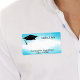 Klassfacken kan vara stora händelser så det hjälper till att ha namn bricka för deltagare. Anpassa fält, ta bort all text eller anpassa för att markera ett teckensnitt färg, storlekt och stil som du vill. Skeppningsetiketten är storlek och utformad så att det finns plats för deltagarens namn i mitten.