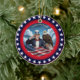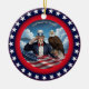 • This classic round ceramic ornament features a striking digital illustration of bold American symbols in vivid red white and blue. It makes a thoughtful, long-lasting keepsake perfect for any patriotic holiday or occasion throughout the year.