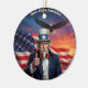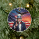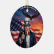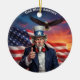 • This classic round ceramic ornament features a striking digital illustration of bold American symbols in vivid red white and blue. It makes a thoughtful, long-lasting keepsake perfect for any patriotic holiday or occasion throughout the year.