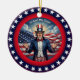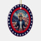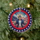 • This classic round ceramic ornament features a striking digital illustration of bold American symbols in vivid red white and blue. It makes a thoughtful, long-lasting keepsake perfect for any patriotic holiday or occasion throughout the year.