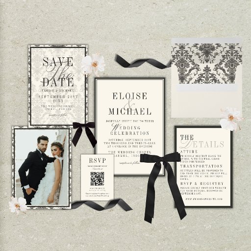 Classic Black and Ivory Wedding Inbjudningar