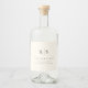 En elegant med ett bröllop-liquor-flaska-märke i monogram och med initialer, namn och bröllop-datum i rik, svart text på en elfenbensbakgrund.