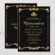 Classic Quinceañera-inbjudan. Med skriptteckensnitt, tiara, svart och guld färg.