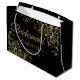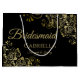 Den här vackra presentpåsen är designad som en bröllop-gåva eller en favoritpåse för Bridesmaider. Den har en svart och guld-elegant med guldfärgade snöre-fristäder i hörnen av texten "Bridesmaid" samt ett ställe för att föra in hennes namn, parets namn och bröllop. Fyll med presenter, favoriter, godis eller någon annan bröllop-svag eller tack. Snyggt sätt att tacka henne för att hon är en del av din speciella dag.