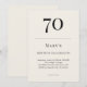 Classic black and soft ivory minimalist birthday invitation with elegant typography for a 70th celebration. Name age date time location and RSVP are fully customizable to suit formal or black tie adult events.