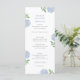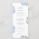 This beautiful design features blue hydrangea blooms and your custom text. Use the template form to add your information. The Design Tool can be used to access the advanced editing menu where you can change the font, colors and layout of the text, or add text to the back of the menu.