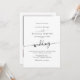 This timeless wedding invitation design features a minimalist layout with clean typography and a single elegant script accent, perfectly paired with a bold photo on the back. The black and white palette gives it a classic yet contemporary edge, while the organic hand-lettered “wedding” script adds a subtle boho twist. Ideal for fall, winter, spring, or summer weddings—especially rustic, outdoor, or editorial-style celebrations. The photo back makes it feel personal and upscale