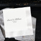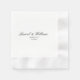 Klassisk brud och brudgumm med plats och datum för pappra servetter från bröllop. Svart skript och ren text.