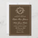 Elegant vintage crest monogram dark coffee brown and ivory buttercream classic formal traditional framed wedding invitation with QR code to website for guest information details and RSVP, featuring a classy hand lettered calligraphy script. +++++++++++ Suitable for timeless stylish old money themed weddings.