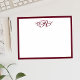 Create your own personalized monogram note card featuring custom 3 letter initials in burgundy elegant script typography with minimalist border design.
