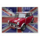Klassisk brittisk bil med Union Jack Flagga på tak