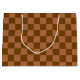 A checkered pattern with alternating brown and tan squares, creating a classic, symmetrical design. The image conveys a sense of uniformity and balance.