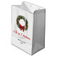 Celebrate the season of giving with this elegant Christmas wreath gift bag, featuring a classic watercolor design of pine branches, holly berries, and pine cones, accented with a red and green plaid pattern. The timeless red, green, and gold color palette adds a warm, festive touch that pairs beautifully with any holiday gift. Designed in a minimalist rustic style, this bag blends tradition and elegance perfectly. Personalize it easily with your family name or special message to make your presents extra meaningful. Perfect for gifting during Christmas gatherings, parties, and celebrations — a lovely way to wrap your holiday cheer with style and charm.