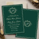 Classic crest monogram emerald green wedding inbjudningar
