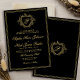 Classic crest monogram gold black wedding inbjudningar