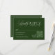 Refined, timeless, and effortlessly elegant, this wedding RSVP card features a rich old-money dark green paired with a soft ivory lettering. The clean typography and classic border design evoke understated luxury—perfect for couples drawn to heritage style, quiet sophistication, and enduring romance.