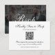 These elegant and modern wedding RSVP response cards feature your own personal photo covering the back of the card completely. A sheer, dark overlay contains formal script calligraphy. The front of the RSVP card is black and white with a classic layout and formal calligraphy, and has a scannable QR code so that guests can respond online at your wedding website.