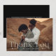 Tack vare Elegant bröllop kan du få dina fullt-utfallande vågrät bröllop-foto med "Tack" i vitt. Anpassa det moderna fototackkortet med ditt namn. Baksidan av fotot i bröllop är ett tack för att du kort visningar ditt anpassningsbar-meddelande med vit text med en solid svart bakgrund.