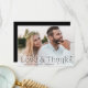Tack vare Elegant bröllop-kort får du ett fullt-blekt vågrät bröllop-foto med "Kärlek och tack" i svart skrift. Anpassa det moderna fototackkortet med ditt namn. Baksidan av fotot i bröllop är ett tack för att du kort visningar ditt anpassningsbar-meddelande med vit text med en solid svart bakgrund.
