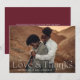 Tack vare Elegant bröllop-kort får du ett fullt-blekt vågrät bröllop-foto med "Kärlek och tack" i vitt. Anpassa det moderna fototackkortet med ditt namn. Baksidan av fotot i bröllop är ett tack för att du kort visningar ditt anpassningsbar-meddelande med vit text med en solid burgundisk bakgrund.