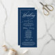 Elegant vintage Classy navy Blue-skript, Bröllop Ceremony Program in card (long). Det är designat med rullans accenttecken som kan vara personlig med anpassningsbar/ personlig för brudens sida, ceremonidetaljer, minnesanteckningar och tack.