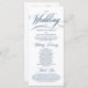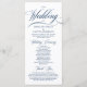 Elegant vintage Classy navy Blue-skript, Bröllop Ceremony Program in card (long). Det är designat med rullans accenttecken som kan vara personlig med anpassningsbar/ personlig för brudens sida, ceremonidetaljer, minnesanteckningar och tack.