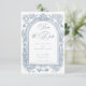 Announce your special day with an elegant traditional wedding photo save the date card featuring a vintage-style arch floral border in soft dusty blue. The same frame holds your favorite couples photo on the back. Perfect for a formal ceremony or an affair with a classic, timeless aesthetic. This refined design offers an opulent look. Created by Simply Farmhouse Press.
