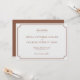 Detta utsökta biet i ett kontorsmaterial sammanför rikedomen hos djupa bruna nyanser med den mjuka elegansen hos ecru, vilket skapar en tidlös och sofistikerad bakgrund. Den klassiska men moderna estetiskt designade estetiskt anger tonen för ett firande som överskrider tiden. Designat för att komplettera "Silvia" bröllopsinbjudan samordnar den perfekt med hela sviten. Utforska samlingslänken på den här sidan för att hitta alla matchande objekt i den här vackra designen.
